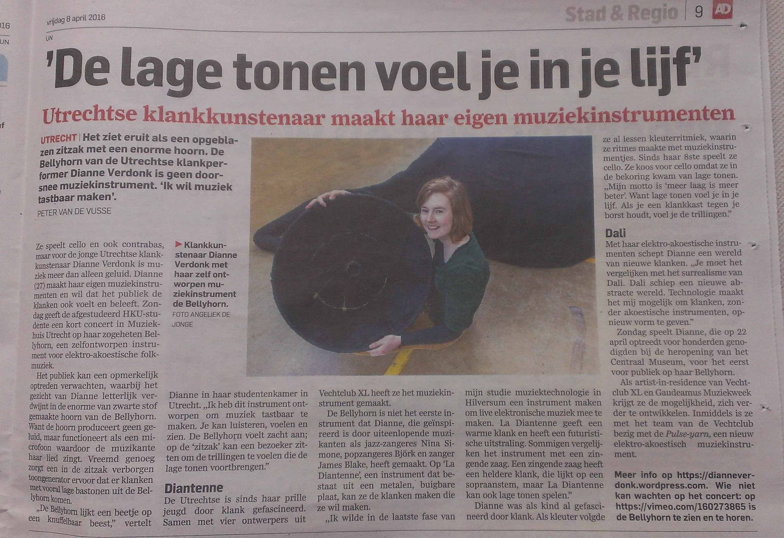 1st of April, Bellyhorn will be part of the festival Het Rumoer in Groningen. A short announcement and a Bellyhorn photo (by Viorica Cernica) were published in a Groninger newspaper (Dutch) last week! Read the article here: